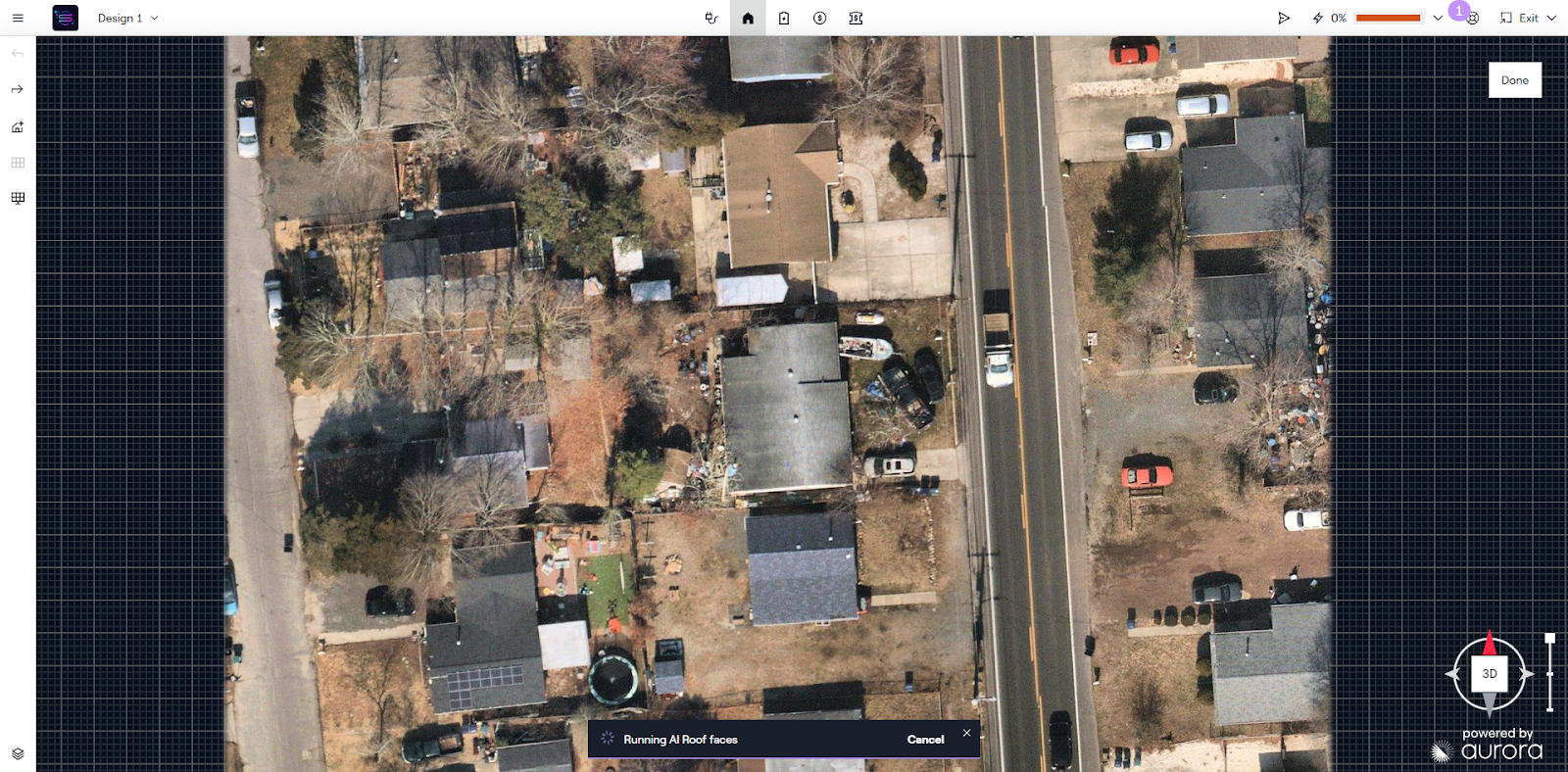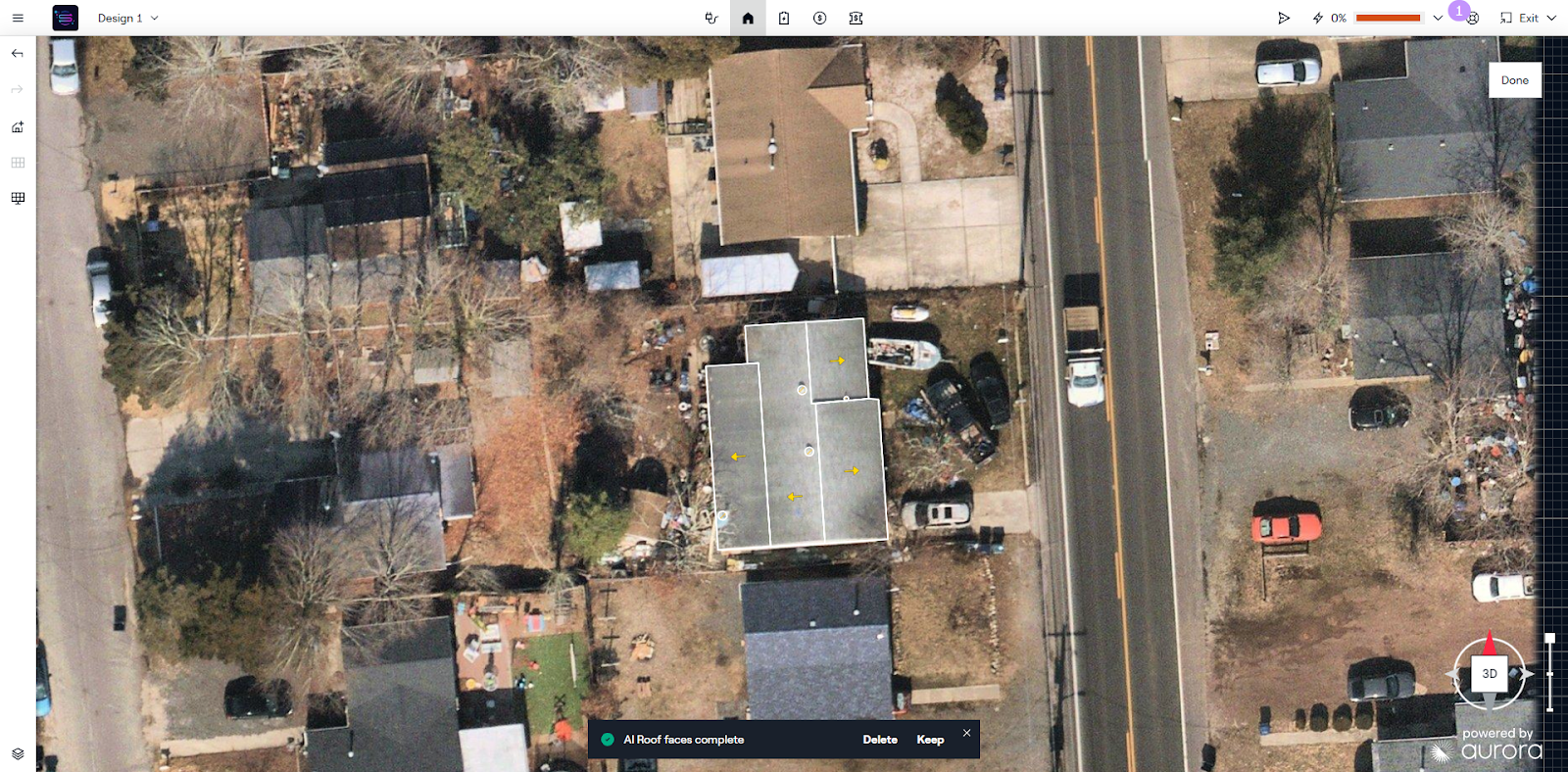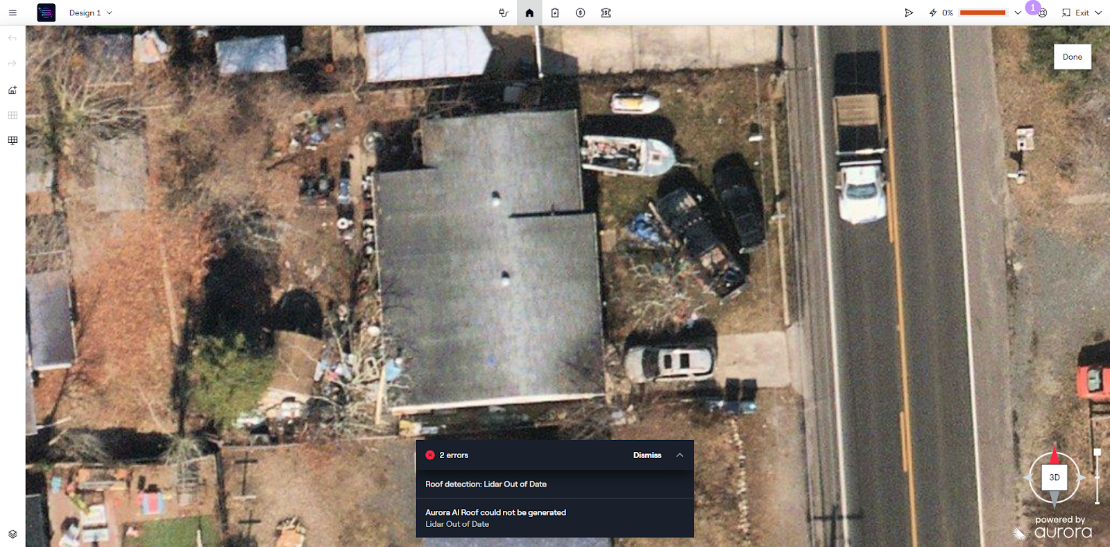 Im Sales Mode oder im Design Mode verarbeitet Aurora automatisch Guthabenrückerstattungen für KI-Dachläufe, die storniert oder gelöscht werden (über ein Popup, nicht nach Abschluss des Laufs) oder die aufgrund unzureichender Daten nicht abgeschlossen werden können. Unterfinden Sie Screenshots von dem, was der Benutzer in der App sehen wird. Diese Screenshots beziehen sich auf den Sales Mode. Die Popups sind im Design Mode identisch, mit Ausnahme der Option "Bearbeiten" im Design Mode.