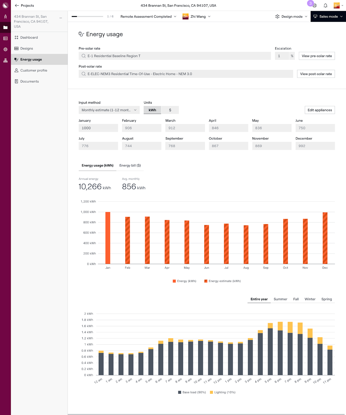 Für einzelne Projekte in Aurora können Benutzer die Details zu den Tarifen vor und nach der Solaranlage auf der Seite Energienutzung im Verkaufsmodus und im Projekt-Dashboard anzeigen und bearbeiten.
