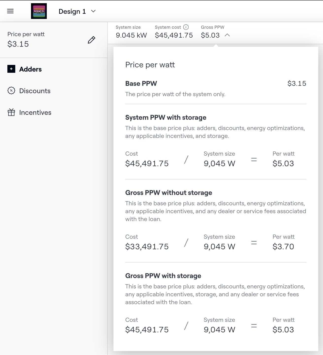 Die Preise für die Energieoptimierung haben keinen Einfluss auf die Anreizwerte. Die ITC-Werte und andere Anreize werden auf der Grundlage des Systempreises abzüglich der Kosten für Energieoptimierungen berechnet. Zurzeit unterstützt Aurora keine Anreize für Produkte zur Energieoptimierung.