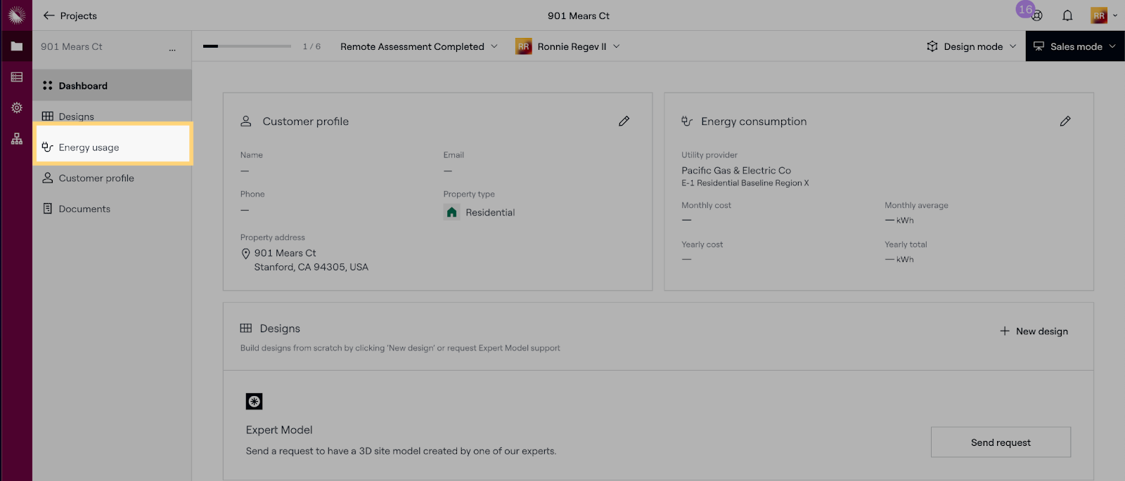 Hinweis: Sie müssen dies nicht ausfüllen, bevor Sie einen Vorschlag erstellen. Siehe Eingabe des Energieverbrauchs von Kunden im Sales Mode für weitere Einzelheiten.