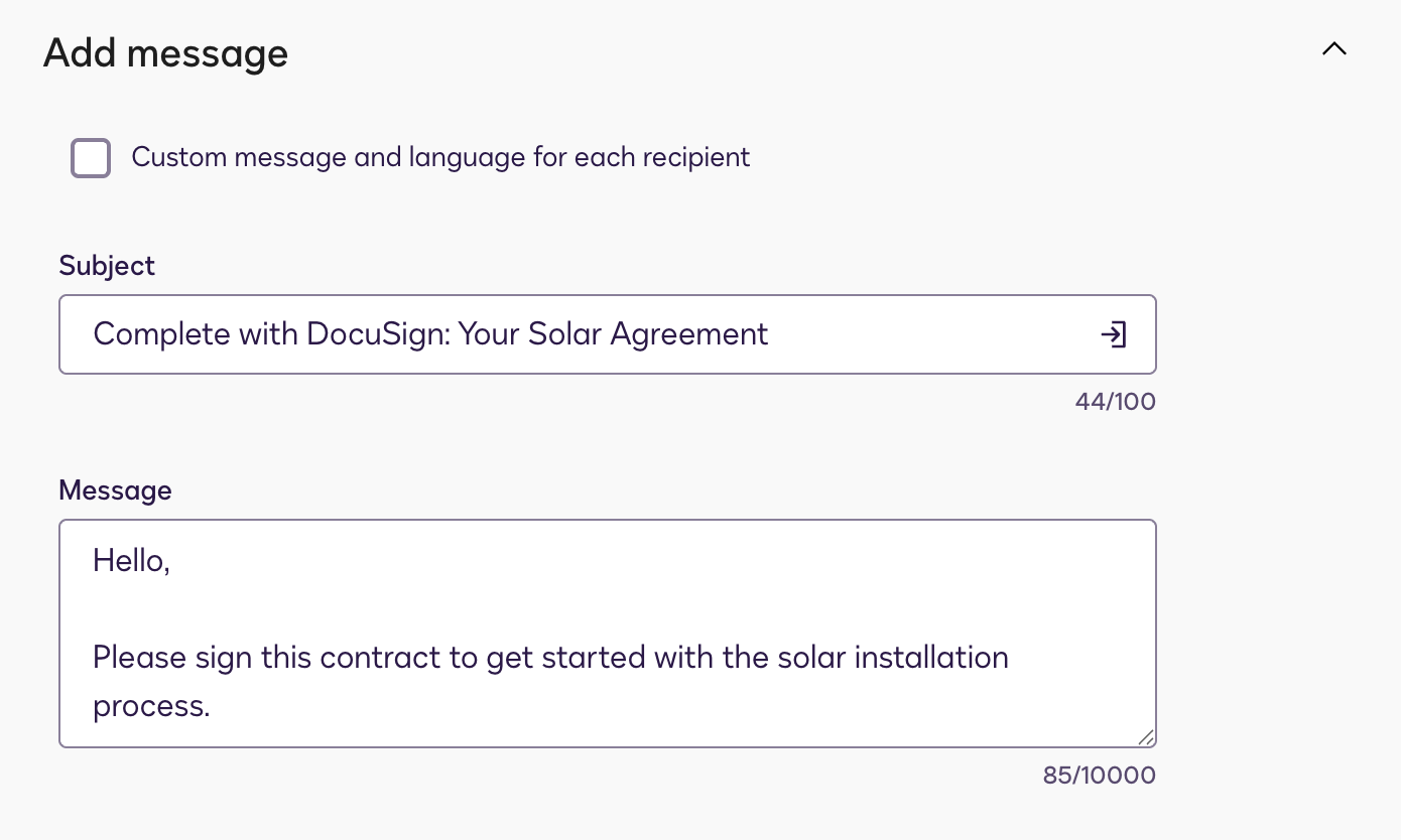 Beim erstmaligen Versenden eines Vertrags muss jeder Benutzer sein eigenes Benutzerkonto im Mandanten-DocuSign-Konto erstellen. Eine Anleitung dazu finden Sie hier.
