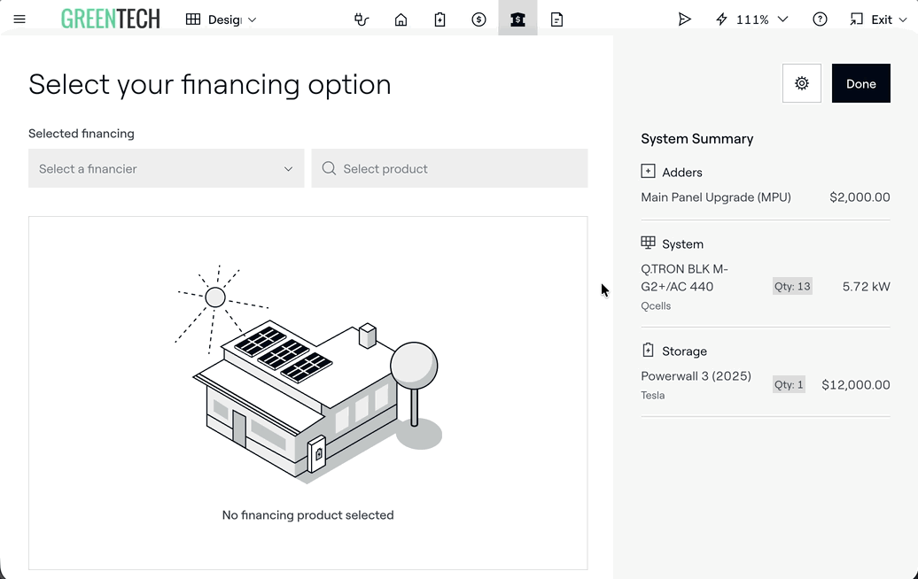 - Navigate to the Financing page (the dollar sign icon in the top nav)