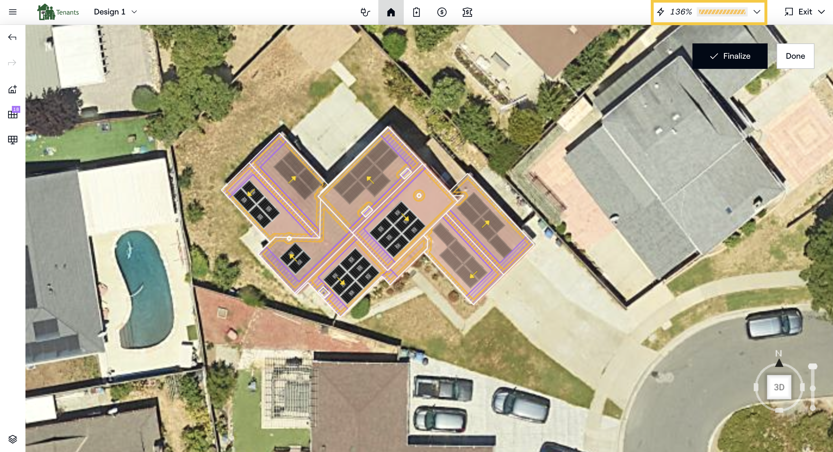 Note: Estimates are available only when all panels are placed in Sales Mode on the roof. When using ground mounts or any part of the system is placed or changed in Design Mode, the estimates will not update live and users must recalculate to run the full simulation.