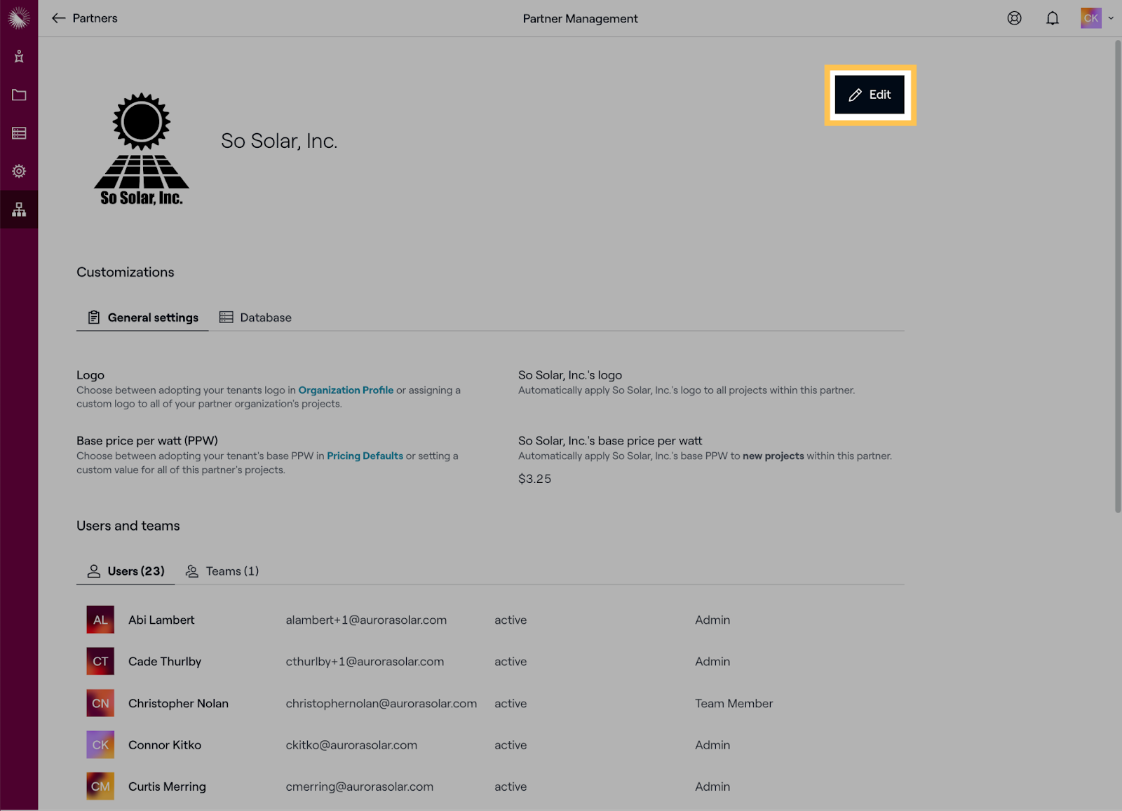 User Management: Partners