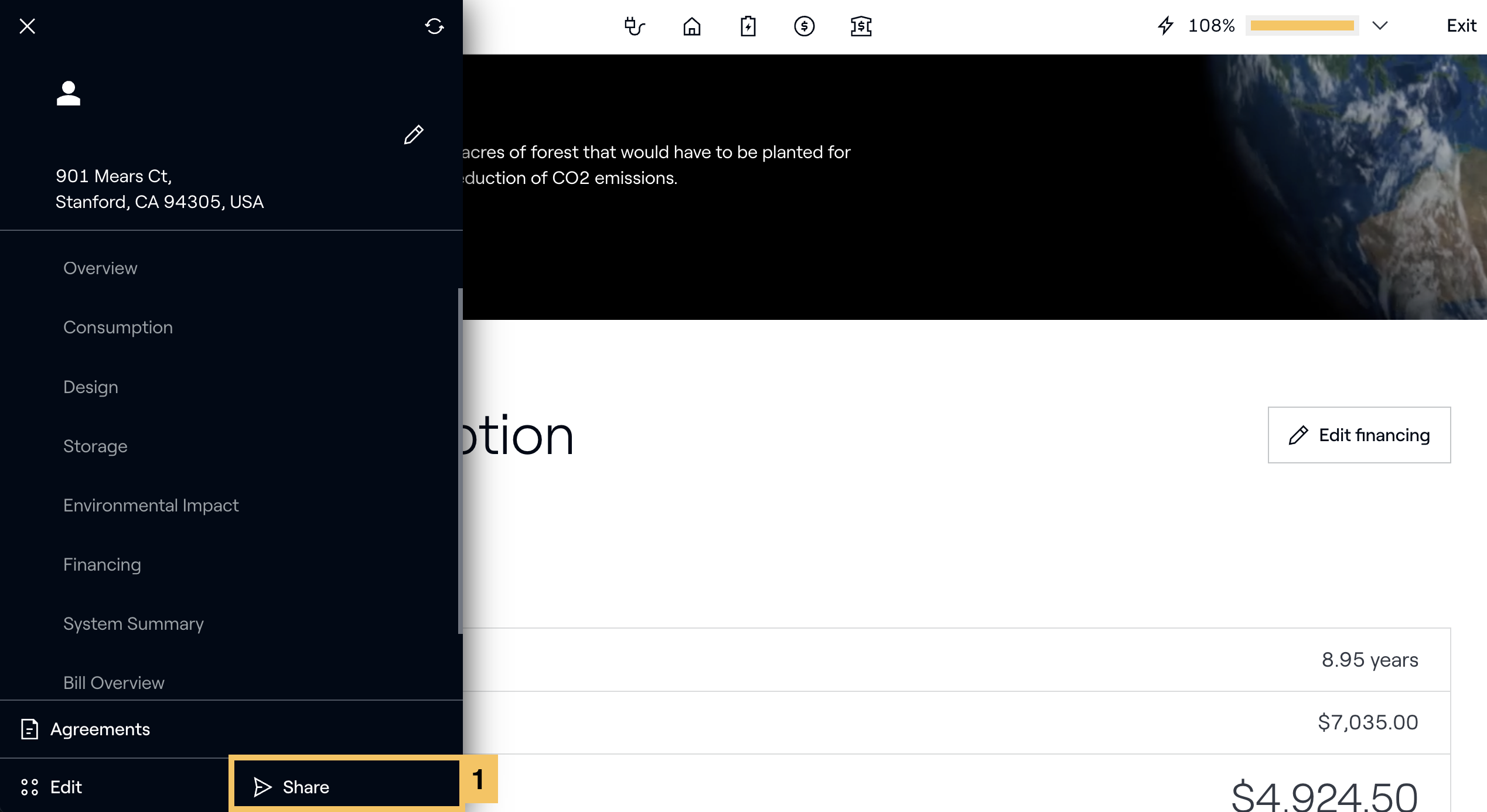 After you've placed your panels, it's time to add financing to your project.