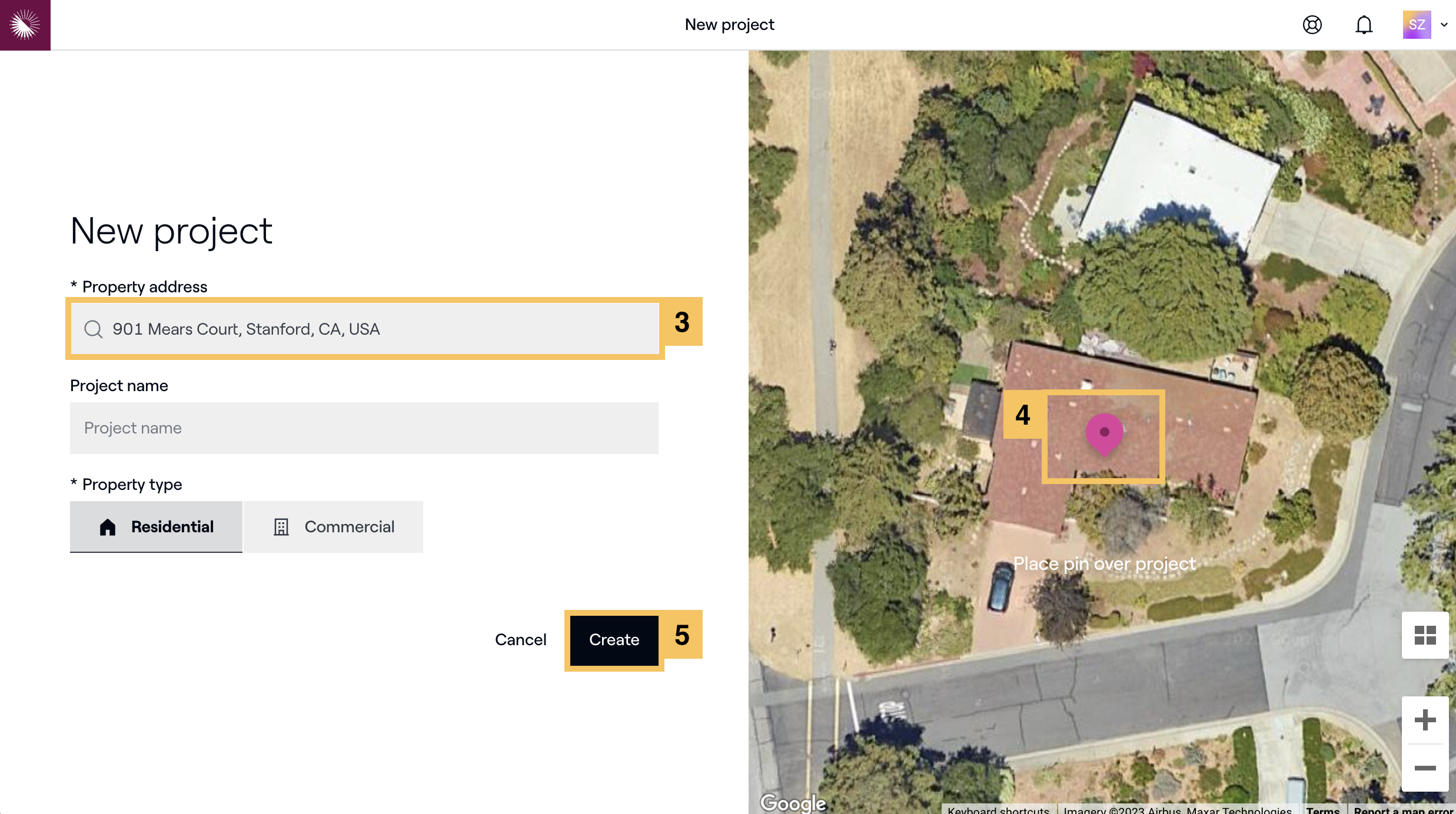 - Make sure the project marker pin is directly over your target property