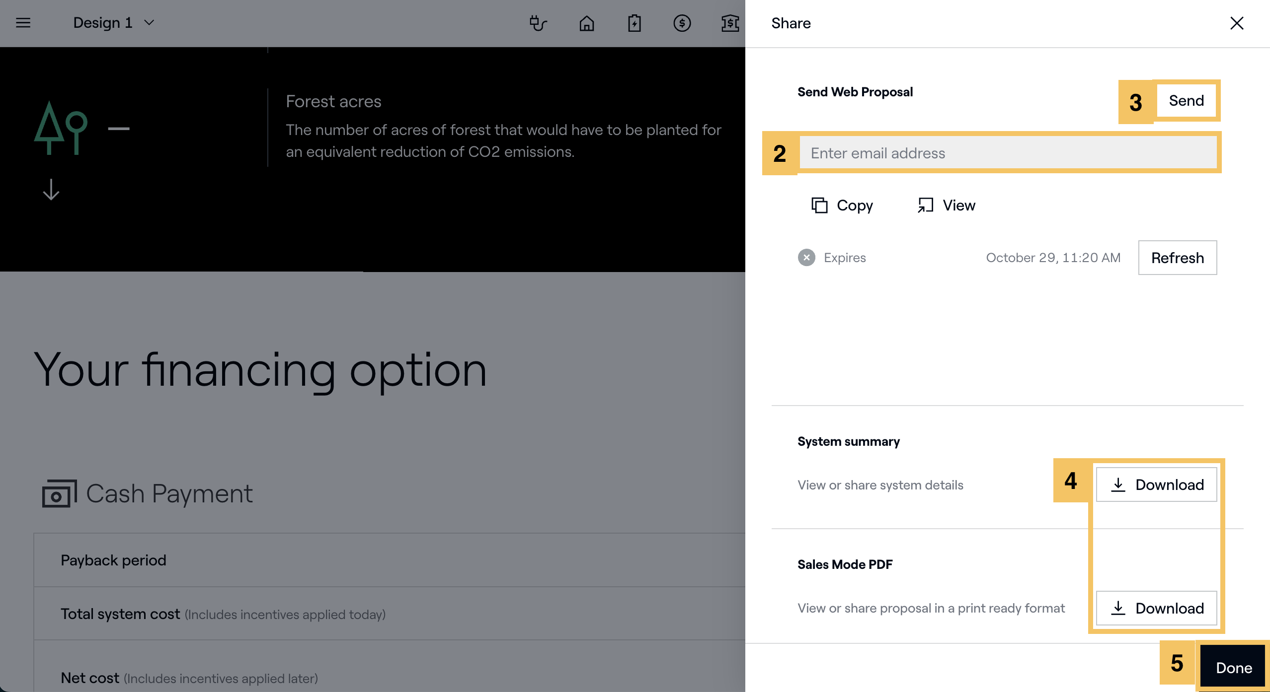 - For a PDF proposal leave behind or system summary, select Download