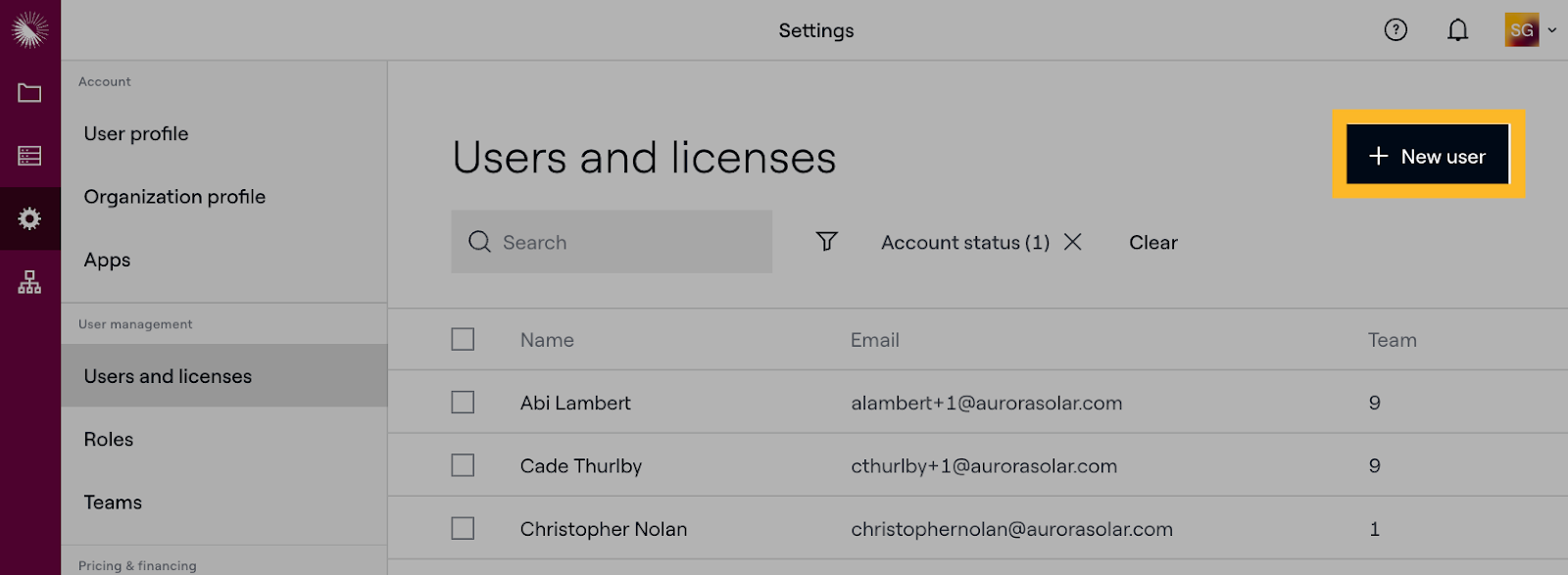 - Go to Settings > Users and licenses