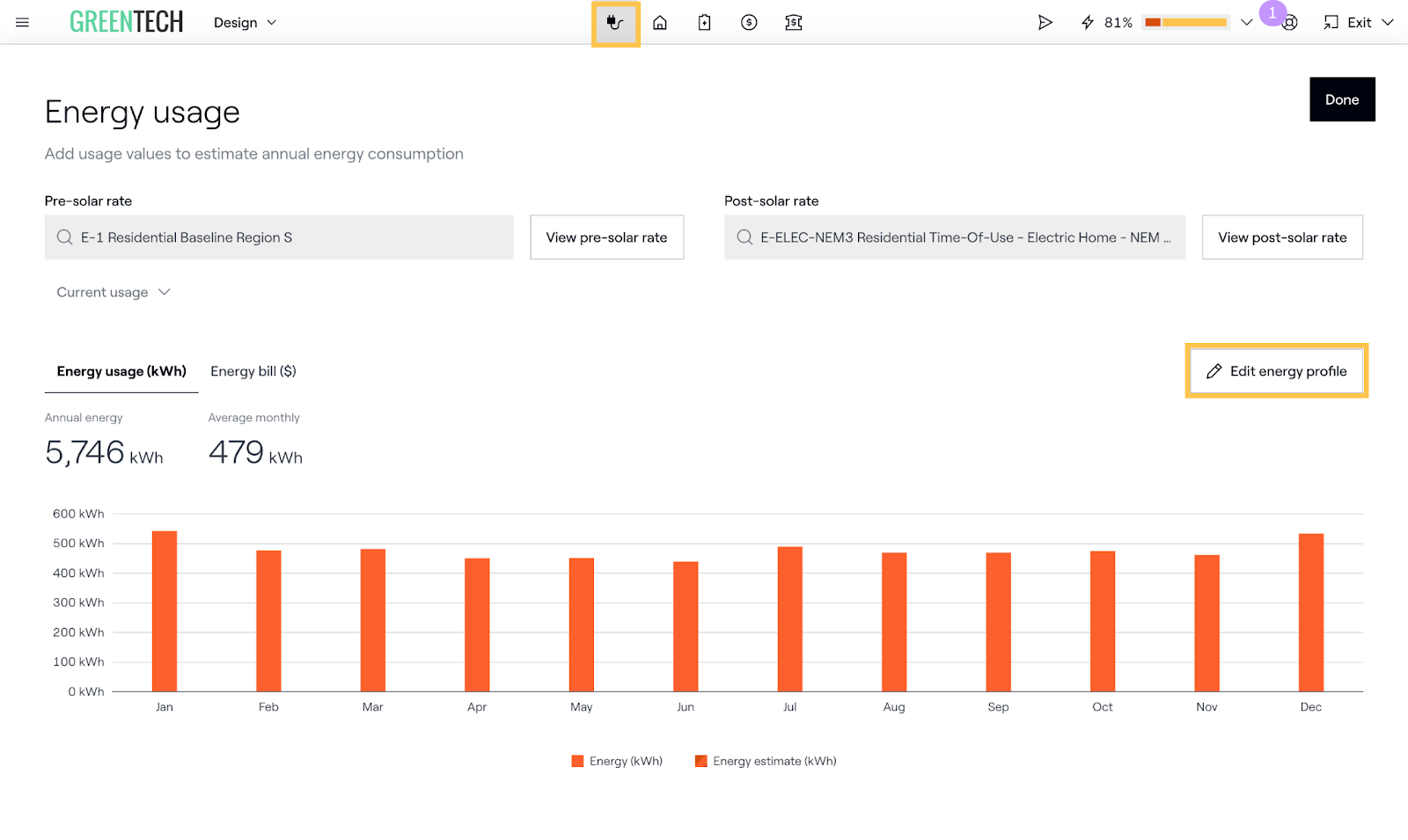 - Change individual Monthly energy offset - Increasing or decreasing this value will impact future energy usage by the amount set per month and be reflected in the energy usage profile.