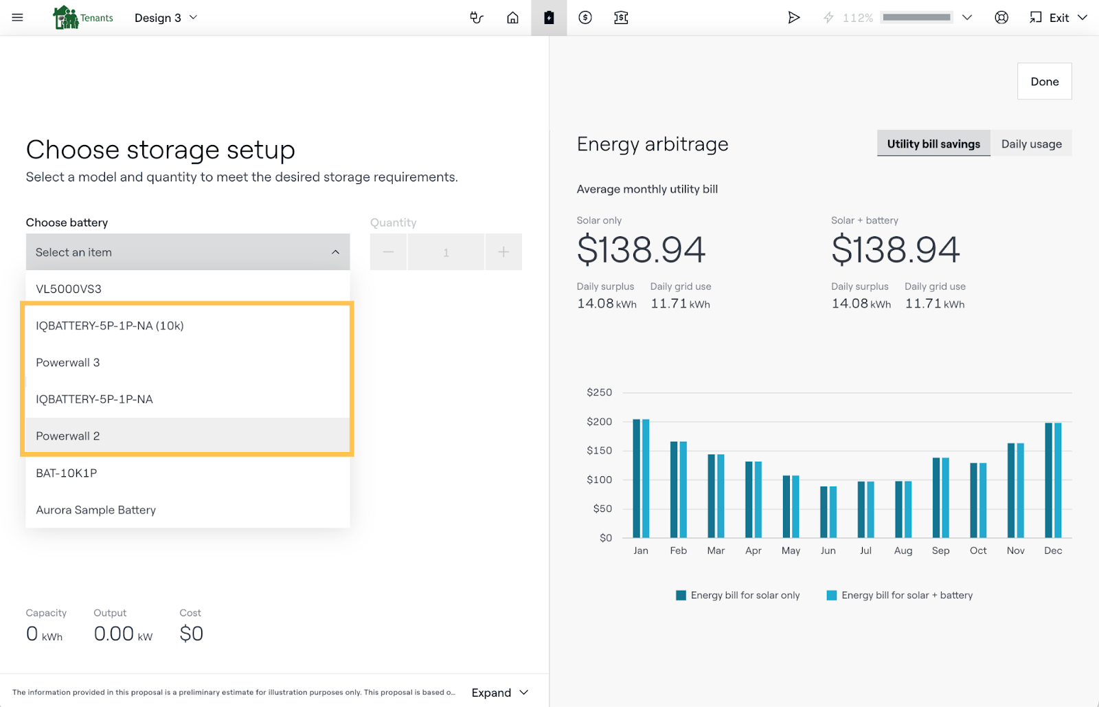 If adding storage to the design, ensure the selected Battery is from a manufacturer found on EnFin’s AVL. Please contact your EnFin relationship manager to be sent AVL details.
