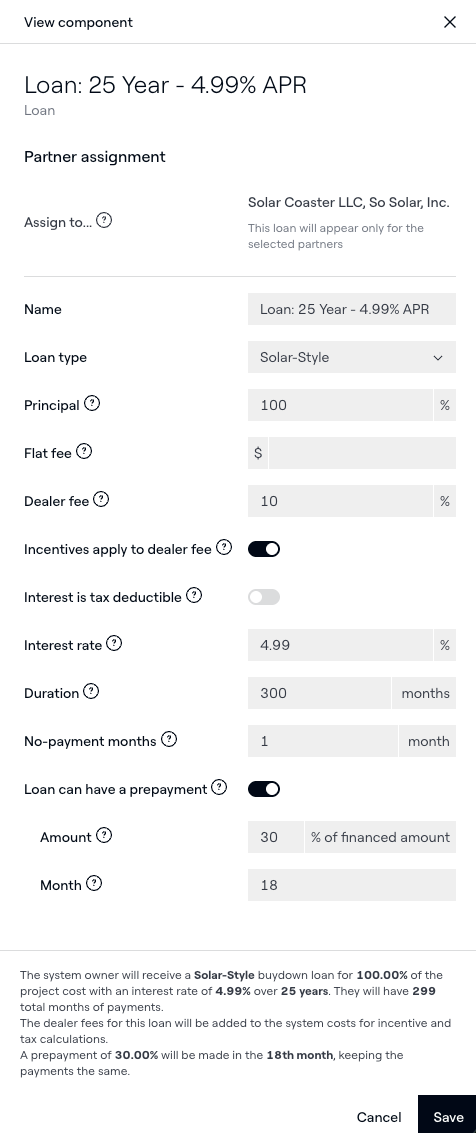 - Set Loan type to Solar-Style.