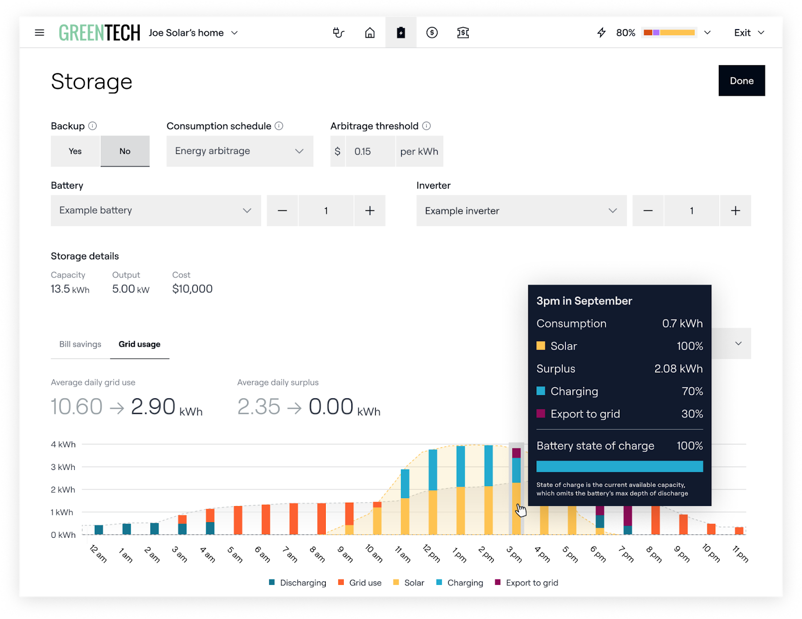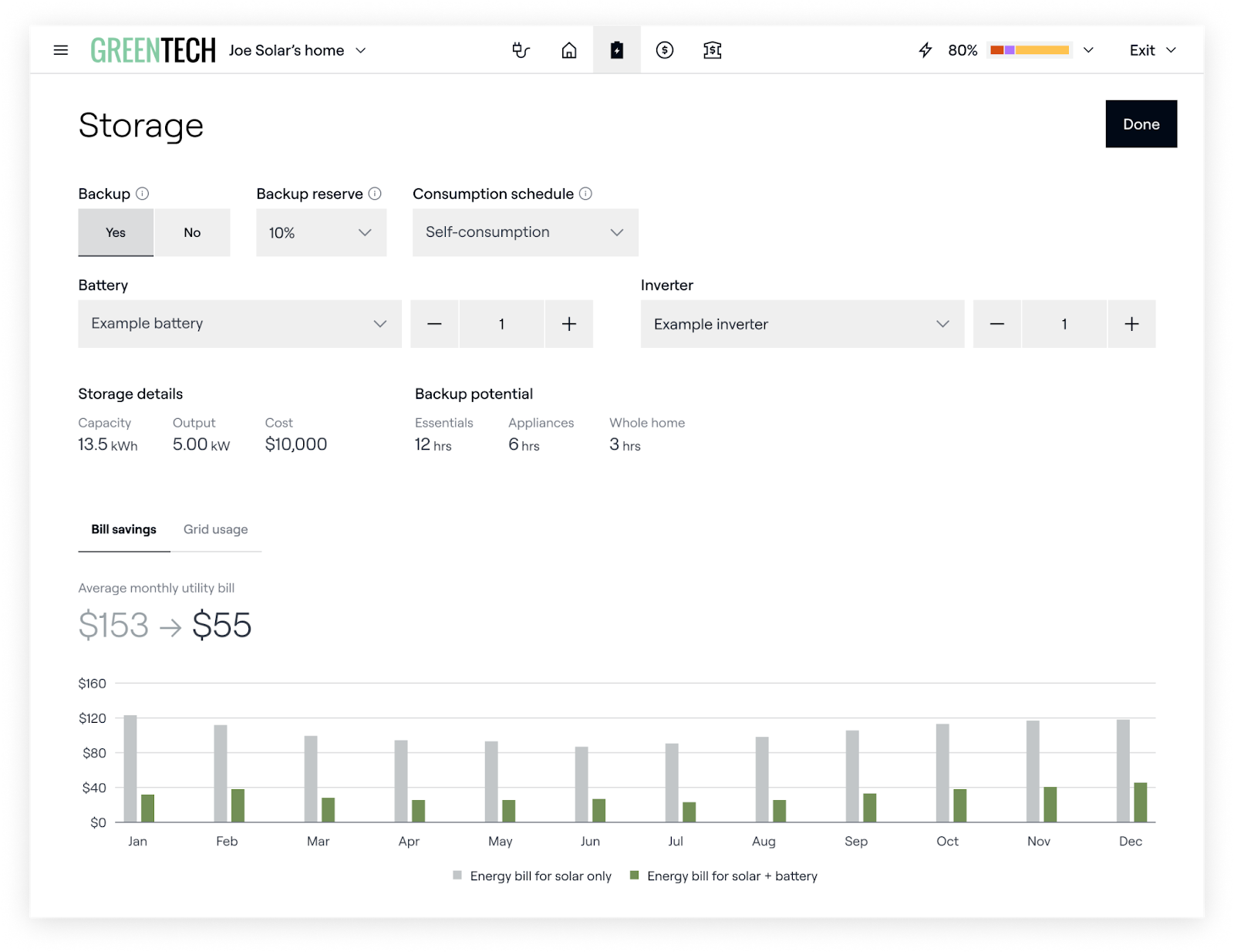 Note: the backup reserve affects the backup duration and storage bill savings.