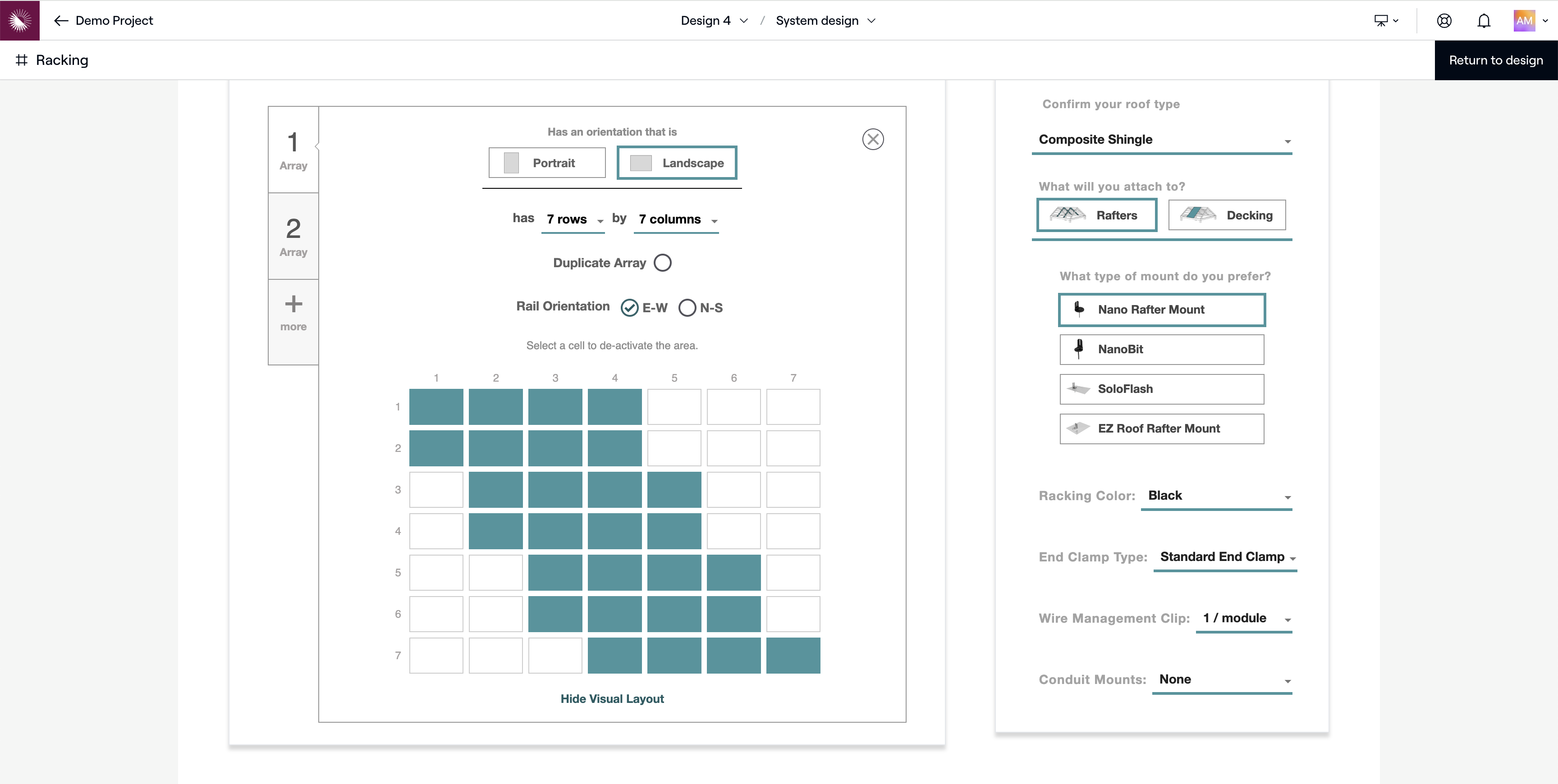 Construya un sistema de estanterías en la aplicación de diseño Sunmodo sin salir de Aurora y almacene automáticamente los datos clave de las estanterías (por ejemplo, la lista de materiales) con su diseño de Aurora.