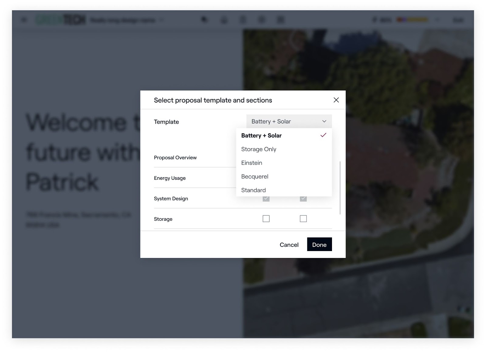 À partir de là, les représentants peuvent sélectionner un modèle différent pour leur proposition et masquer ou afficher différentes sections du modèle.