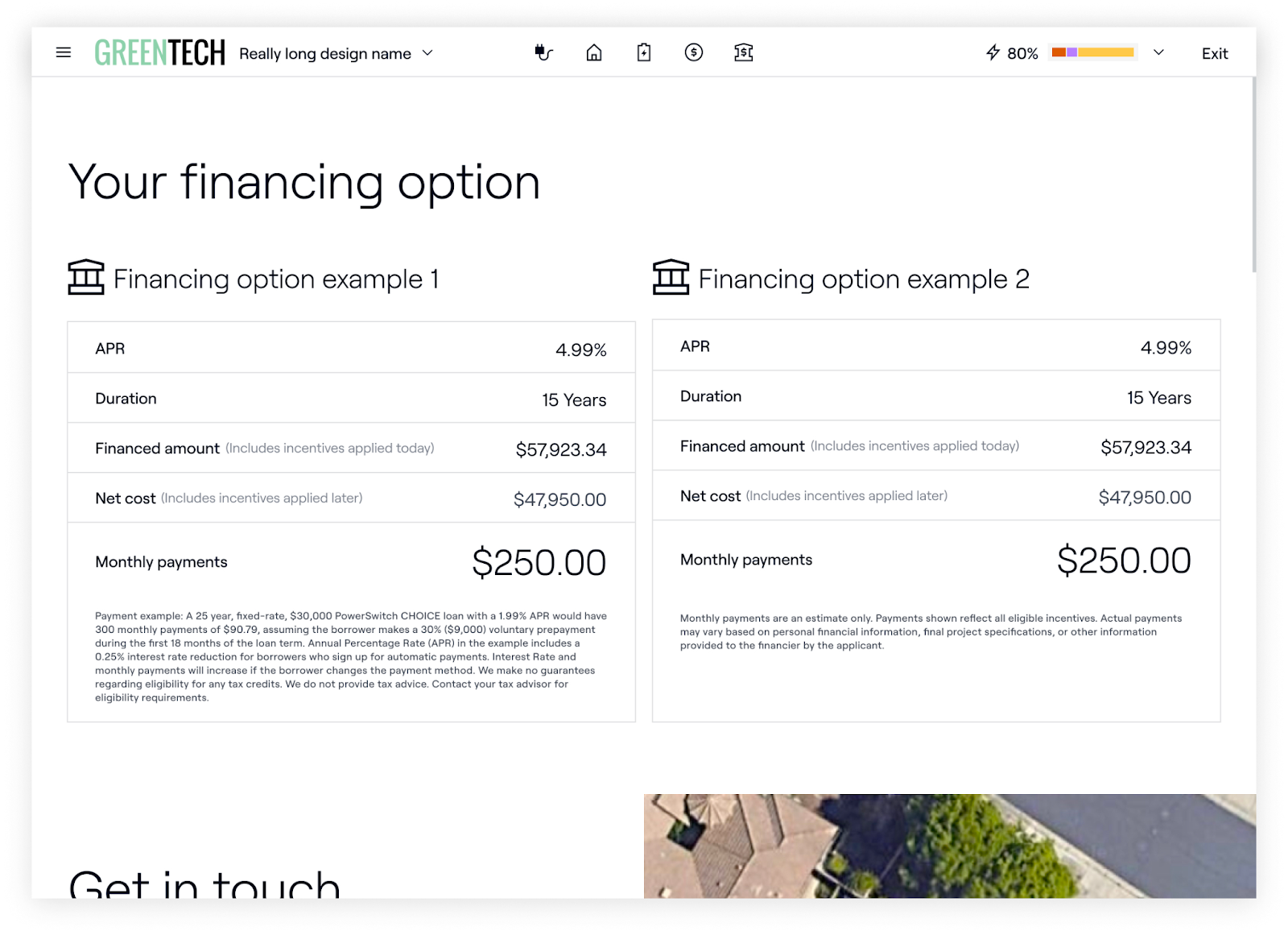 Auparavant, les représentants pouvaient cliquer sur "Développer les détails" dans la section Financement pour afficher les économies réalisées tout au long de la vie et un tableau des flux de trésorerie cumulés. Ce bouton a été supprimé du modèle standard. Comme auparavant, les graphiques et les chiffres des économies à vie sont disponibles sur la page de saisie du financement en mode vente.