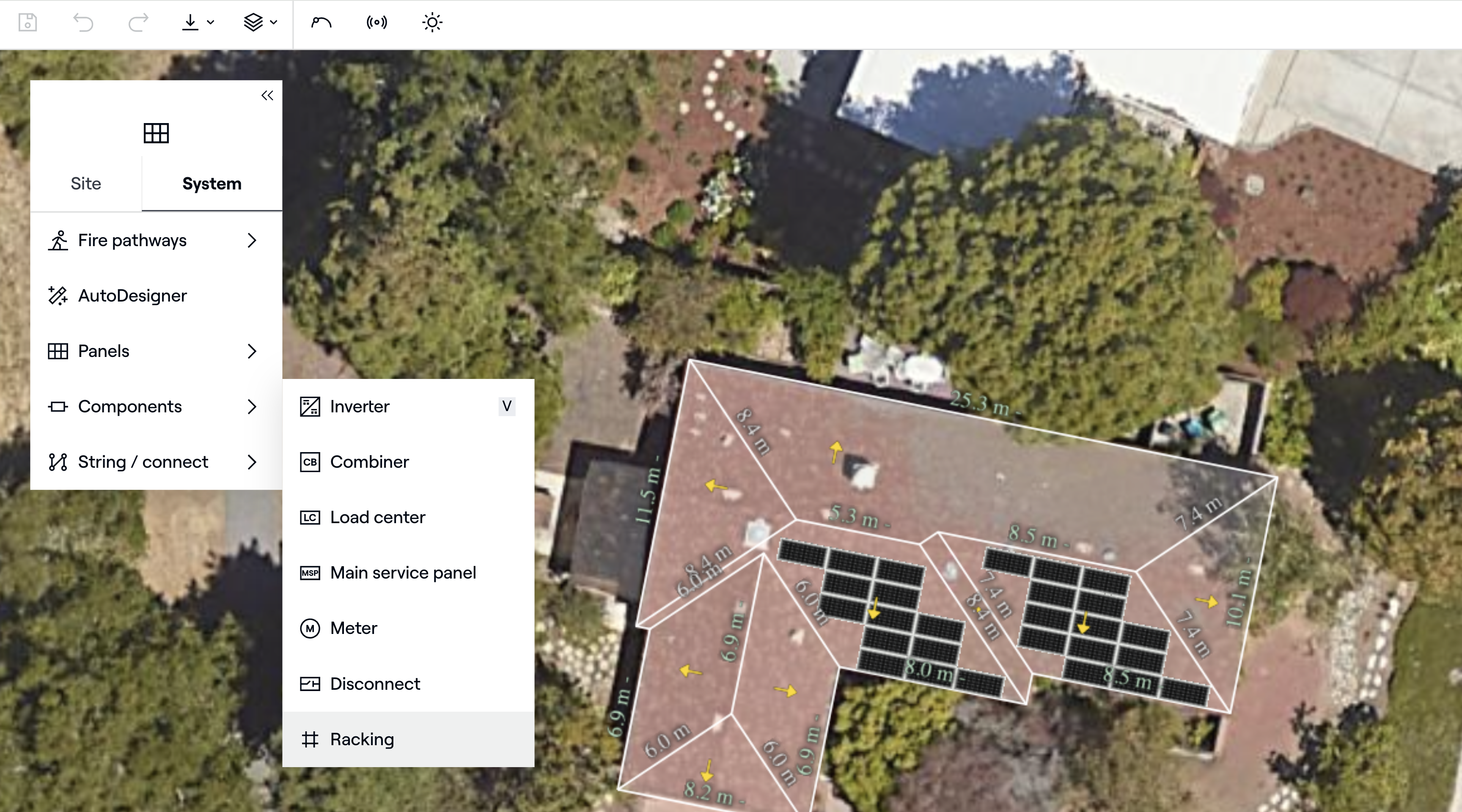 Construisez un système de rayonnage dans l'application de conception IronRidge sans quitter Aurora et stockez automatiquement les données clés du rayonnage (par exemple, la nomenclature) avec votre conception Aurora.