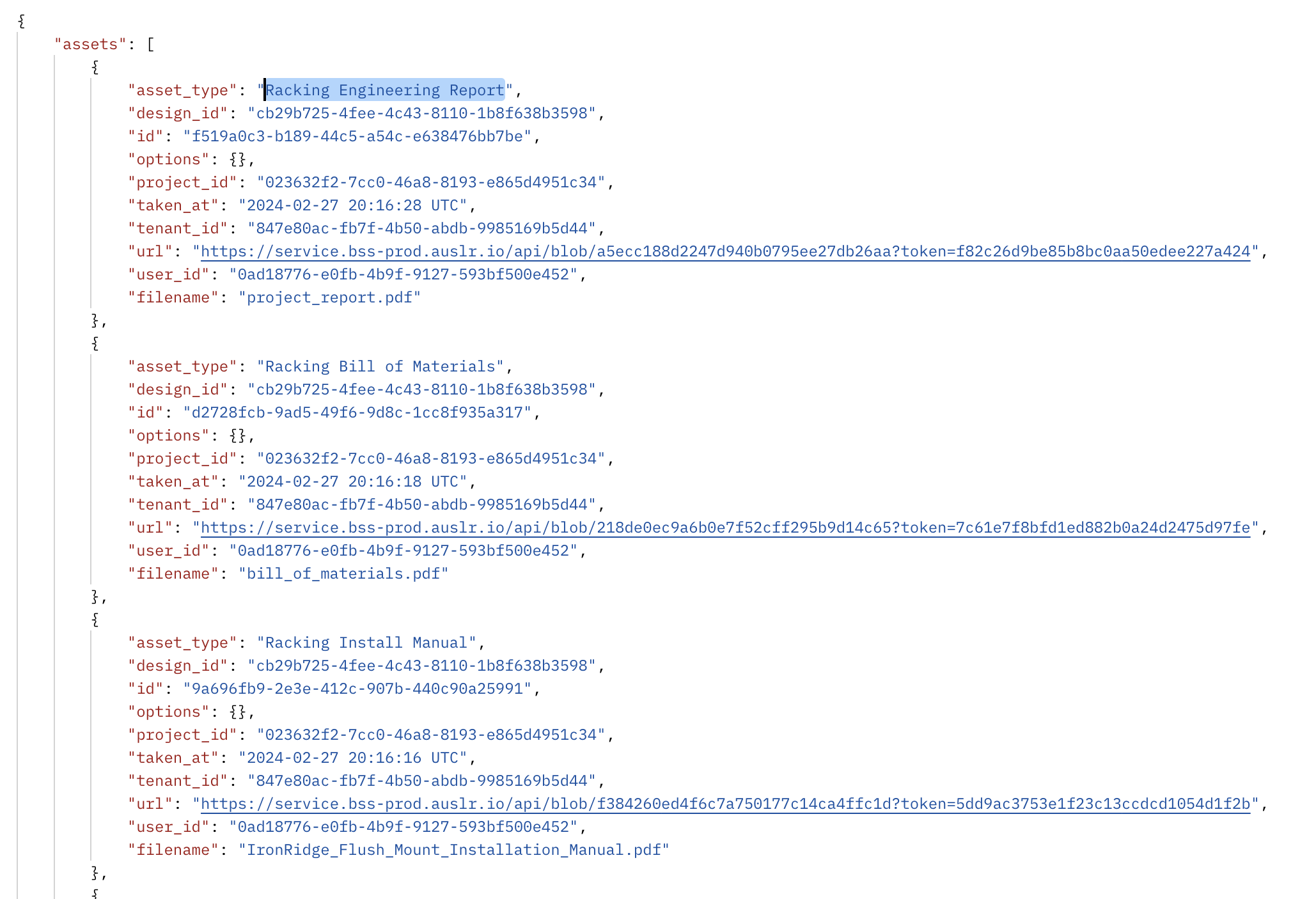 La nomenclature et le manuel d'installation au format PDF sont disponibles via Design Assets API une fois que vous avez enregistré la nomenclature dans l'application IronRidge.