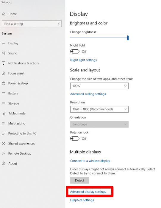 - Cliquez sur Affichage dans le menu de gauche pour Windows 10.