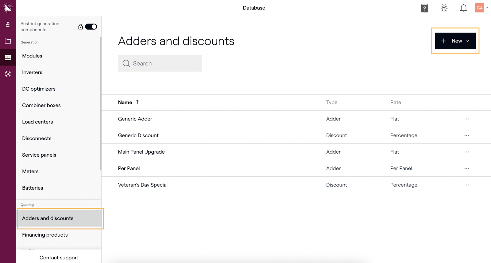 Les suppléments et remises sont des éléments de ligne qui modifient le prix final de votre système, indépendamment des incitations locales, étatiques et fédérales.