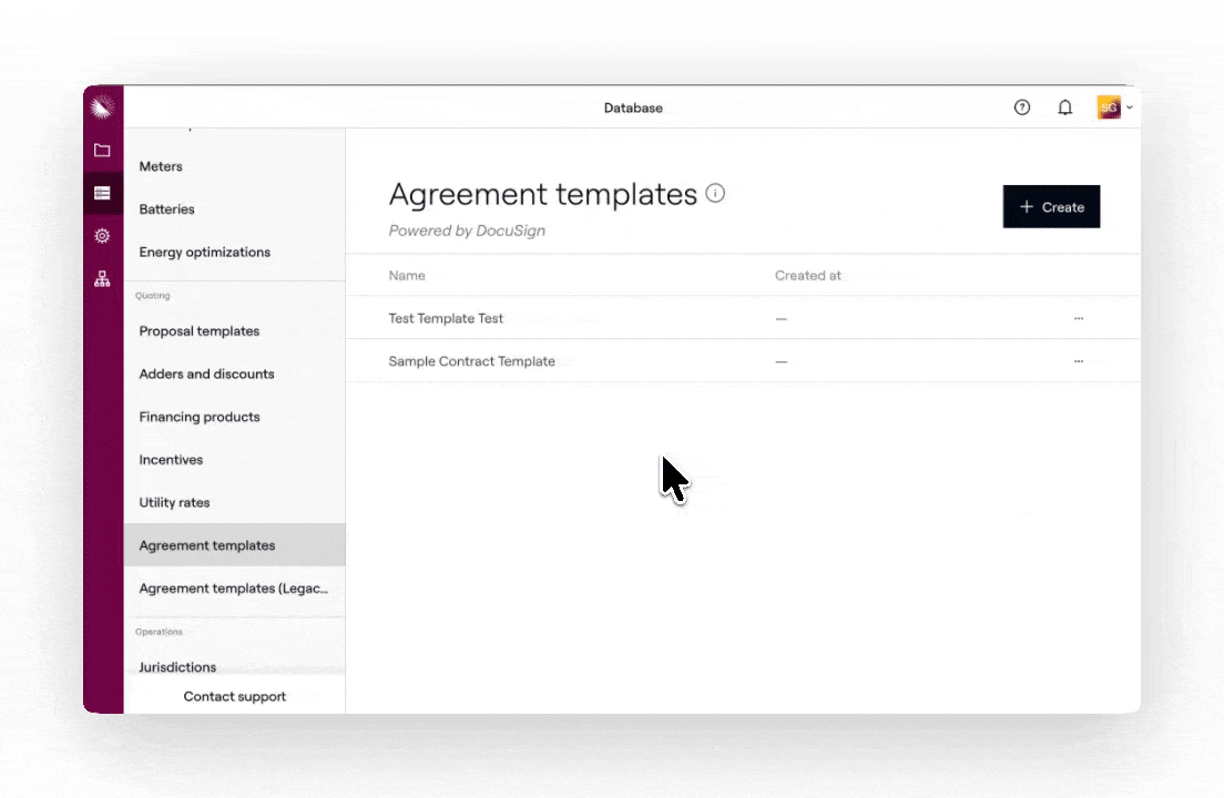 - Accédez à Base de données > Modèles d’accords. Cliquez ensuite sur + Créer