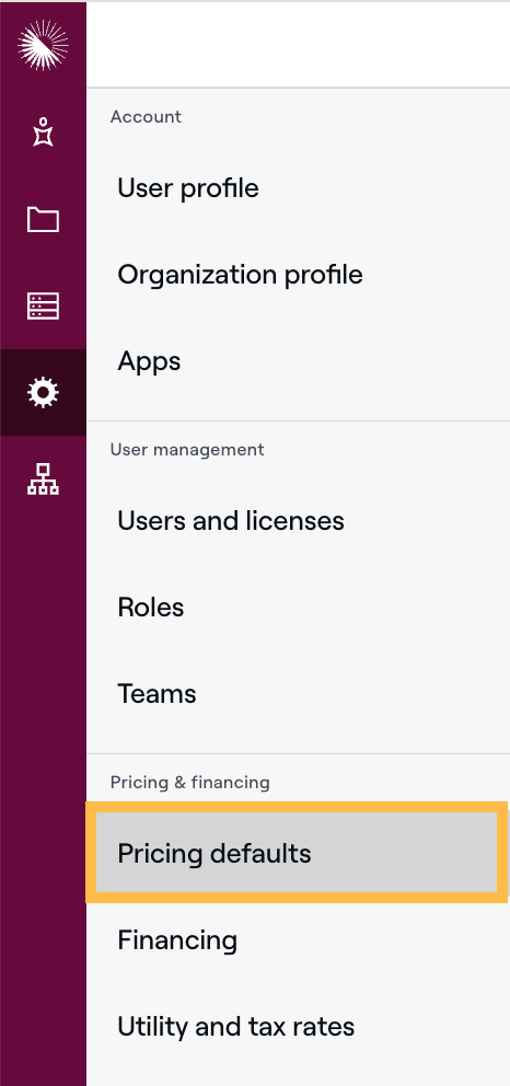 - Dans la navigation de gauche, allez à Paramètres > Paramètres par défaut de tarification.